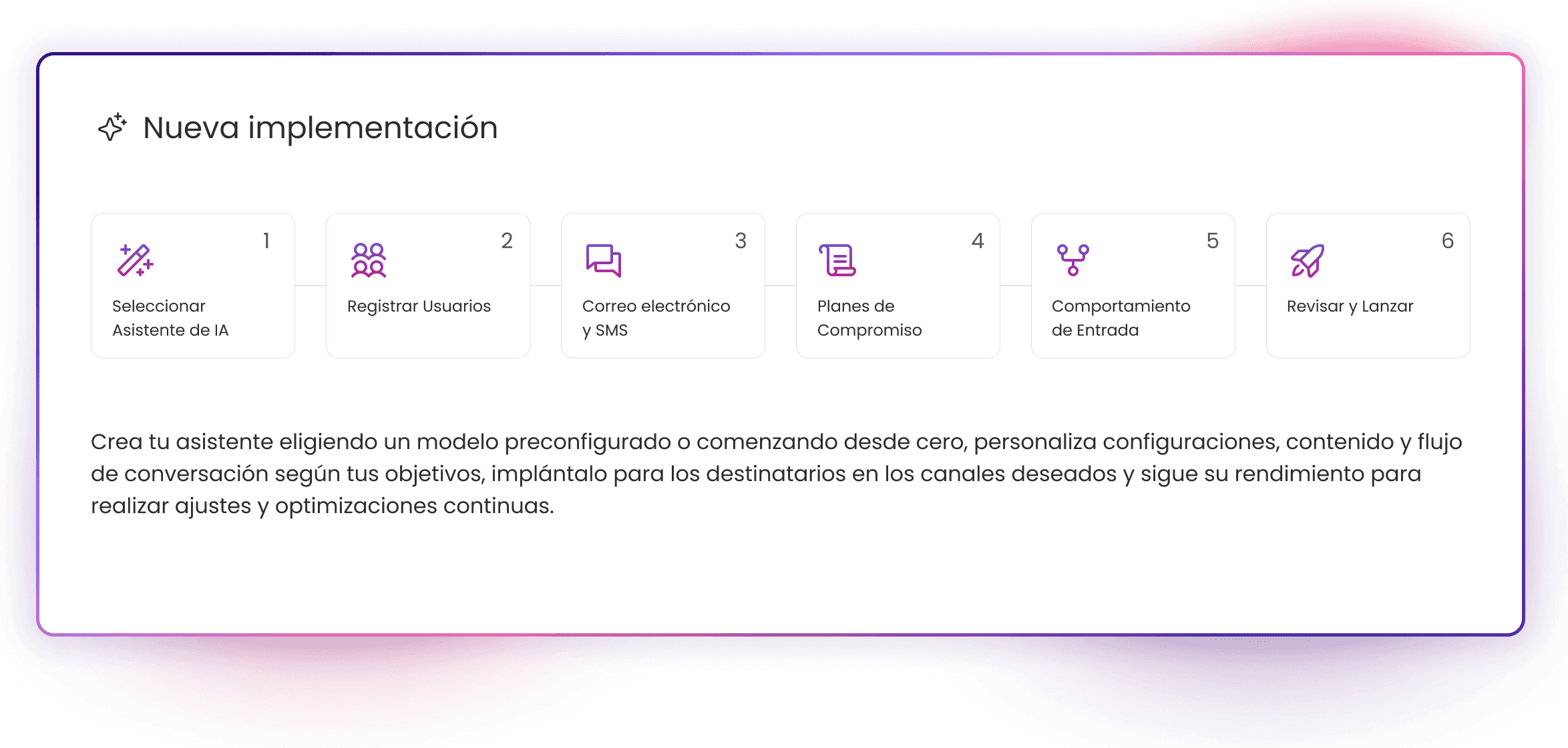 Interfaz Intuitiva: Desarrolle asistentes de IA a través de una experiencia de usuario simplificada—sin necesidad de codificación.